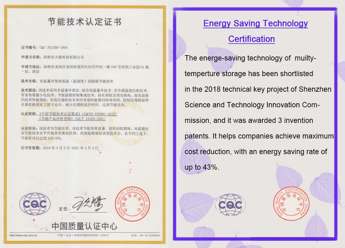 | 4. Komora przyjmuje innowacyjną technologię oszczędzania energii i przeszła krajowy certyfikat energooszczędności.W porównaniu z innymi podobnymi produktami, nasza komora pomaga zaoszczędzić 38% energii. |